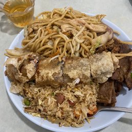 I ordered 22 with no noodles. The egg roll was clear wrap and deliciously crunchy. The portions were huge. It was very filling. Hole in the wall place with great food and nice service.